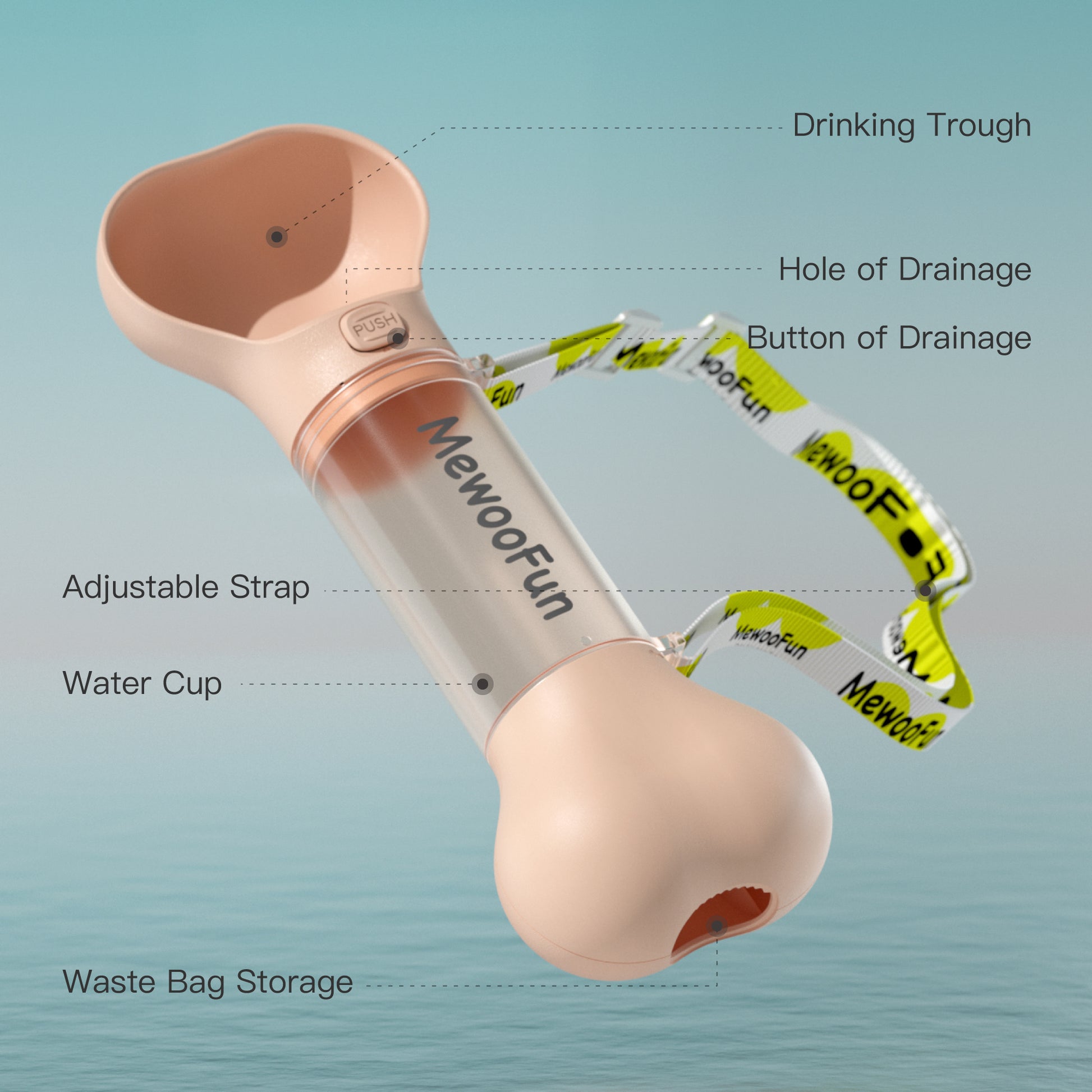 【Dog Bone Shape Design】Our dog water bottle is similar to the "Bone" shape that dogs love.MewooFun dog water bottle for walking has a large slot of 4 inches. It ensures that large dogs can drink water easily, and cats, rabbits, or other small pets can also drink water conveniently. Equipped with adjustable straps, free your hands.